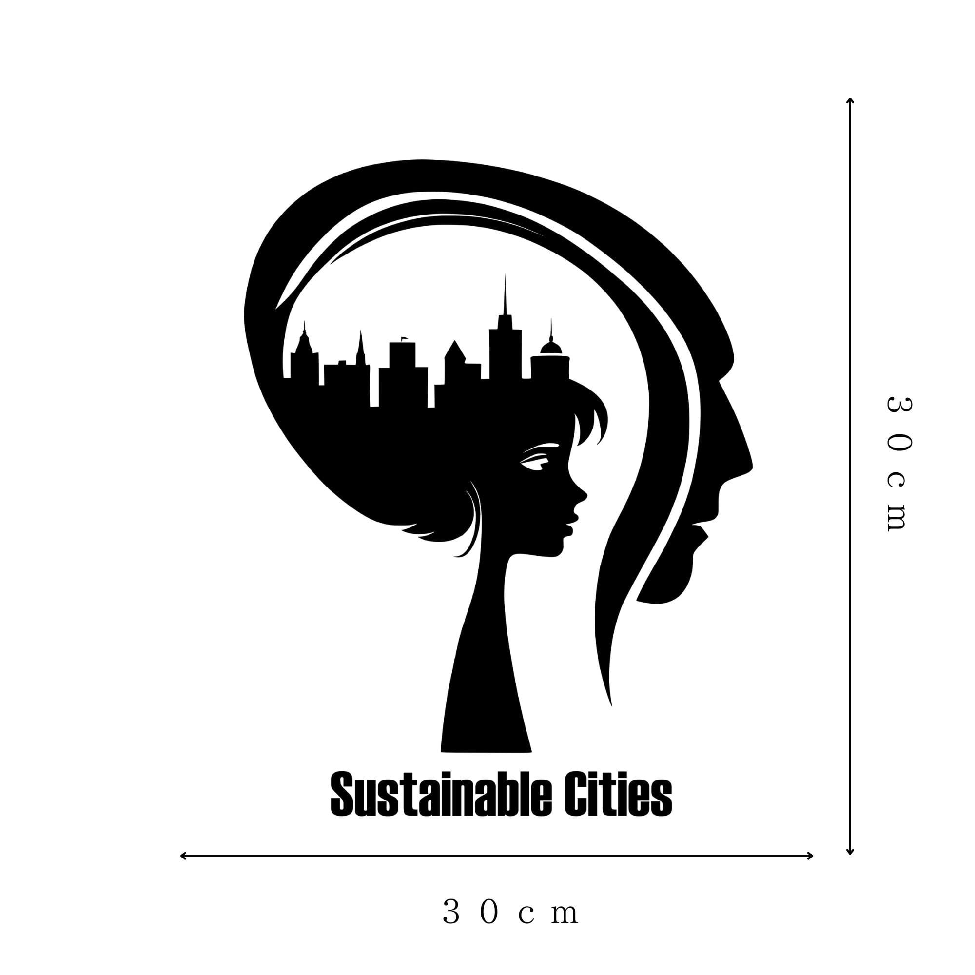 持続可能な都市「Sustainable Cities」街並み 黒シルエット壁ステッカー 30×30cm 貼って剥がせる [Earth Beast]