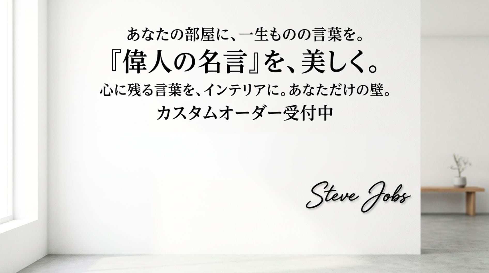 心に残る言葉を、お部屋のインテリアとして美しく飾れるカスタムオーダーの名言ウォールステッカーです。お好きな偉人の名言を、白壁に映えるモノクロデザイン、または黒壁に映える白文字デザインでお作りします。